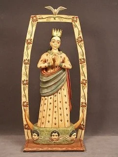 Plus on display: the Society’s first purchase in 1928 of master New Mexican santero José Rafael Aragόn’s Altar Screen (circa 1840 and pictured on right), on long-term loan and display at the Palace of the Governors for nearly 100 years, returned to the SCAS museum for the first time in its history!