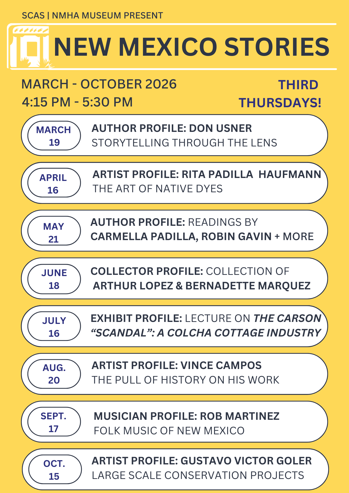 The dynamic Don Usner presents a story still in the making: his search for answers about the purchase of the Santuario de Chimayó, its preservation history, and the community-led efforts to revitalize the historic Chimayó plaza, one adobe brick at a time. His research led him to answers tucked away in the SCAS | NMHA archive. Many answers lead to more questions, and round and round he goes. Strap in for a presentation full of wit, honesty, and joy as he unravels the mysteries of the past through words and images.